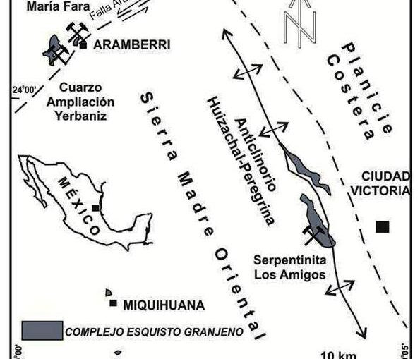 JUAN A. RAMÍREZ FERNÁNDEZ* , EDUARDO A. ALEMÁN GALLARDO* , ESTHER M. CRUZ GÁMEZ* CIENCIA UANL / AÑO 19, No. 79, MAYO-JUNIO 2016 Artículo en PDF En la Sierra Madre Oriental, en el núcleo de grandes estructuras plegadas, como el Anticlinorio Huizachal-Peregrina y el Alto de Aramberri (figura 1) existen extensos afloramientos del complejo metamórfico